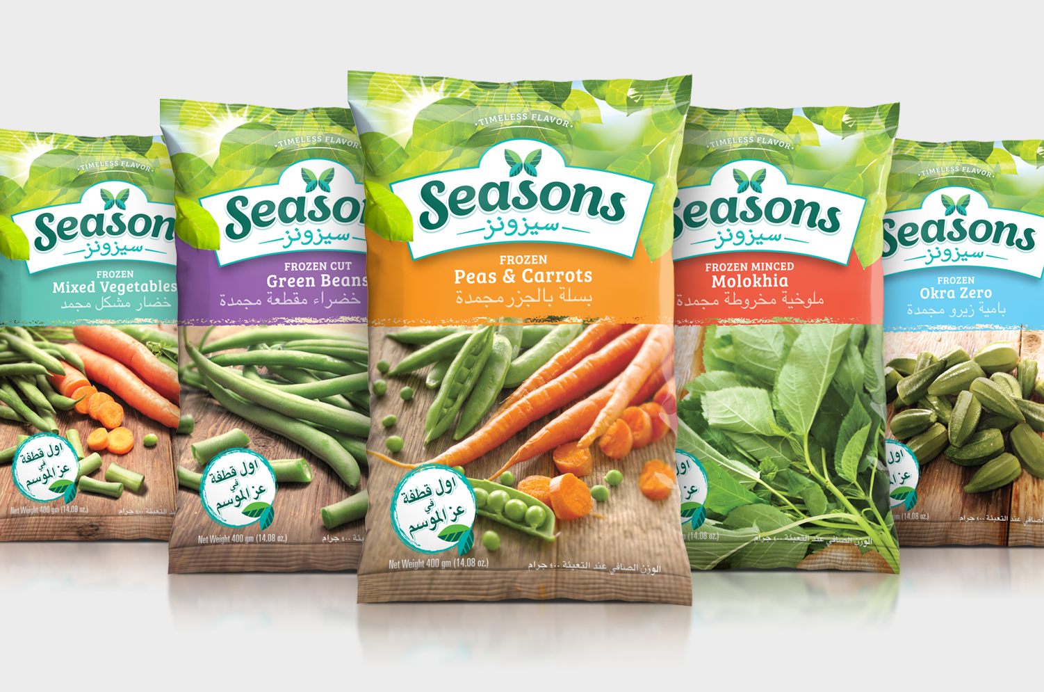 Seasons is a new brand by AGA, an Egyptian frozen vegetable company serving the middle East and Europe for 35 years. The Egyptian frozen vegetable market had become generic with minimal brand loyalty, driven by value. AGA worked with us to differentiate their products and speak to the farm fresh quality of the products, before making their way to the freezer. Our “Timeless Flavor” tagline speaks to a better way to say “Frozen” and the butterfly communicates changing seasons and nature. This new design stands out from their competitors and brings you closer to the wholesomeness of the product.