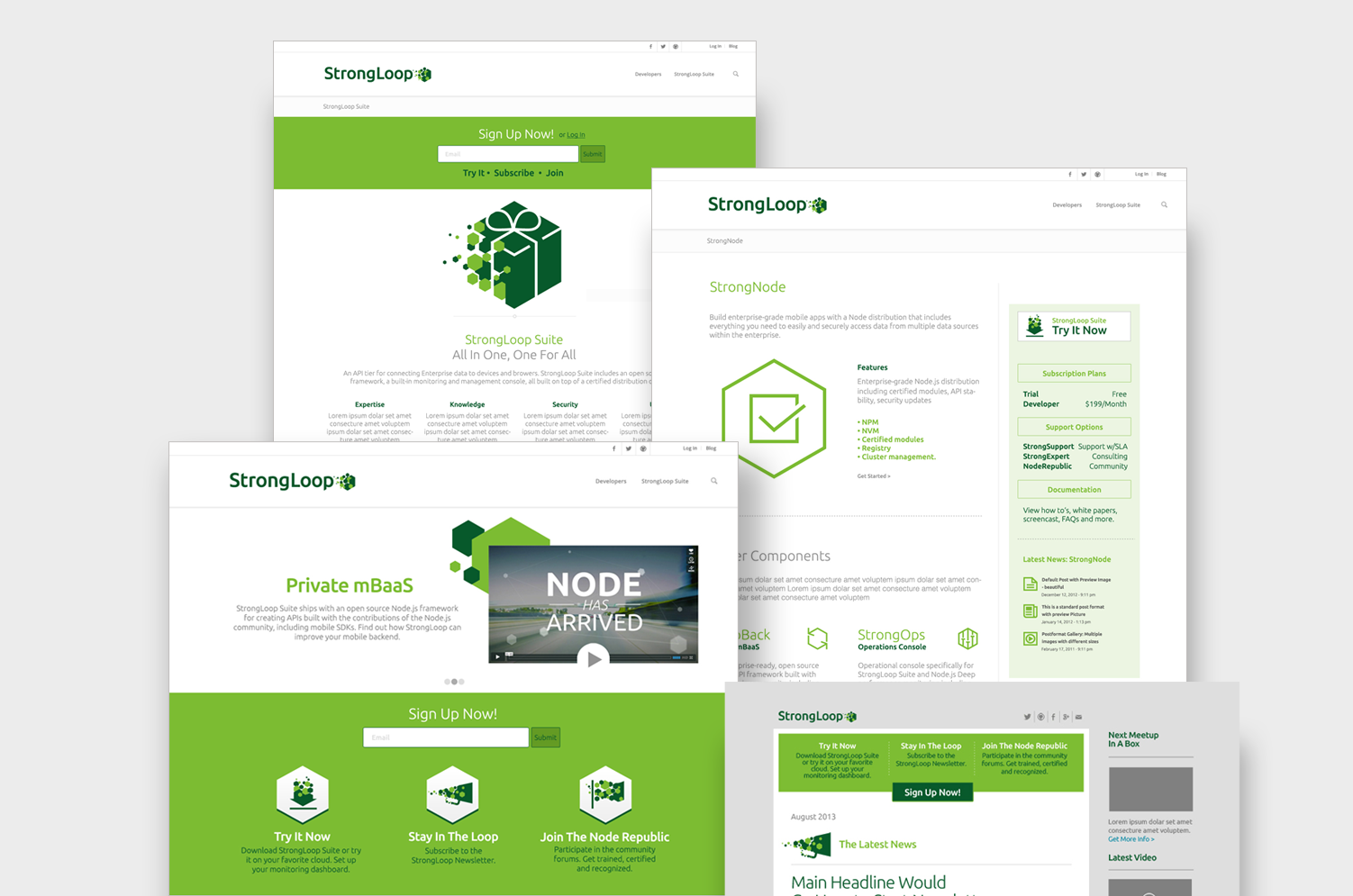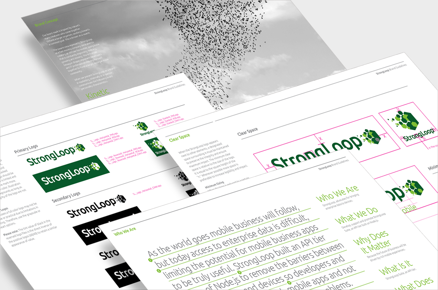 In partnership with Great Monday, a strategy & culture consultant, Thermostat led the brand identity, web presence and launch items for StrongLoop (part of IBM), a company backing Node.js to create data-rich mobile experiences by connecting enterprise data to devices. The brand identity represents StrongLoop as a fast moving company for developers and IT professionals that is constantly improving, building, growing and moving forward to form a larger, stronger Node community.